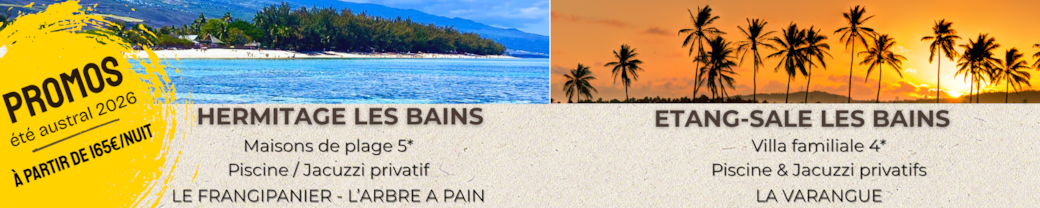ENVIE DE SOLEIL ? Venez séjourner dans Les Villas Emmanuel, nos maisons de vacances élégantes et confortables à La Réunion, classées 4 et 5 étoiles, de capacité 2 à 14 personnes. Situées à Saint-Gilles-les-Bains et à l’Étang-Salé-les-Bains, nos villas avec piscine et/ou jacuzzi privatifs sont à quelques pas des plus beaux lagons et plages de l'ile.
